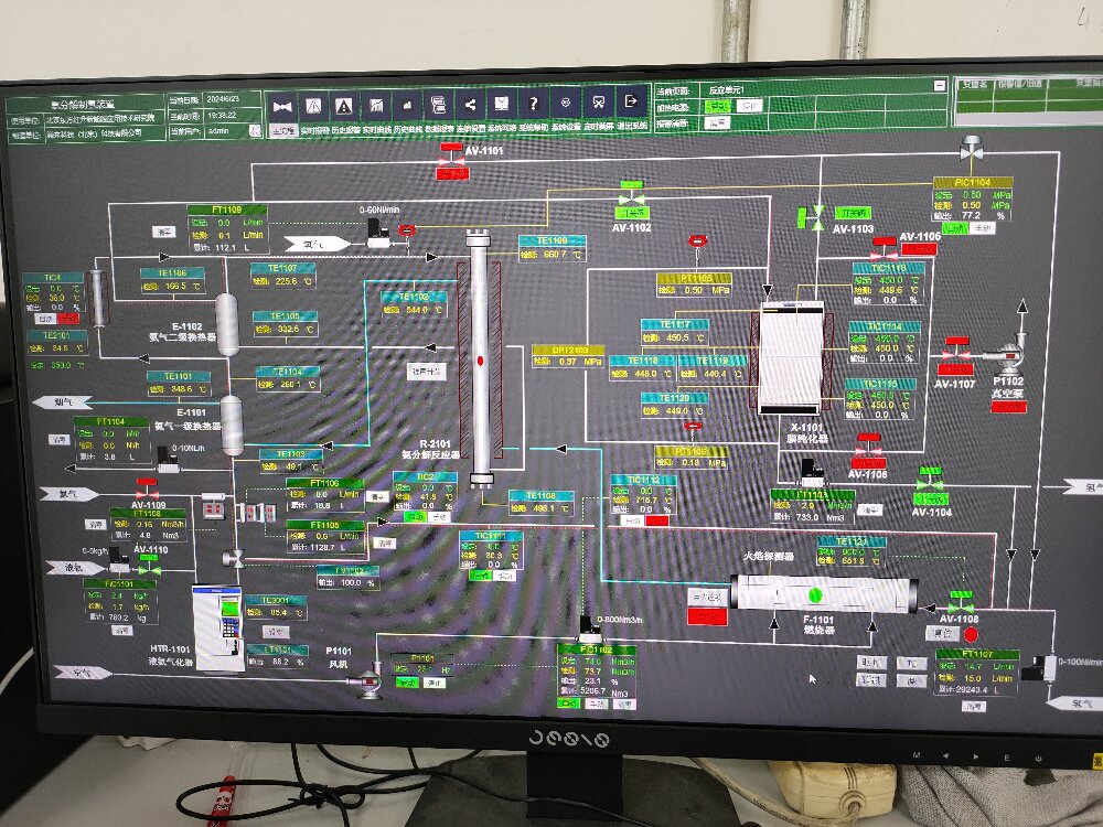 國(guó)內(nèi)某船舶研究院牽頭,參與研發(fā)的氨動(dòng)力船舶原理樣機(jī)2024年6月在中國(guó)科學(xué)院成都有機(jī)化學(xué)有限公司成功運(yùn)行。整套裝置由氨裂解反應(yīng)器+膜純化器+燃料電池組成,液氨作為燃料為裝置提供熱量和發(fā)生反應(yīng)產(chǎn)生氫氮混合氣,再經(jīng)過(guò)膜純化器獲得高純氫氣(>99.999%),最后高純氫氣通入燃料電池發(fā)電。此裝置的氨裂解轉(zhuǎn)化率、產(chǎn)氫量、氫回收率、氫純度和發(fā)電量均達(dá)到預(yù)期目標(biāo)。