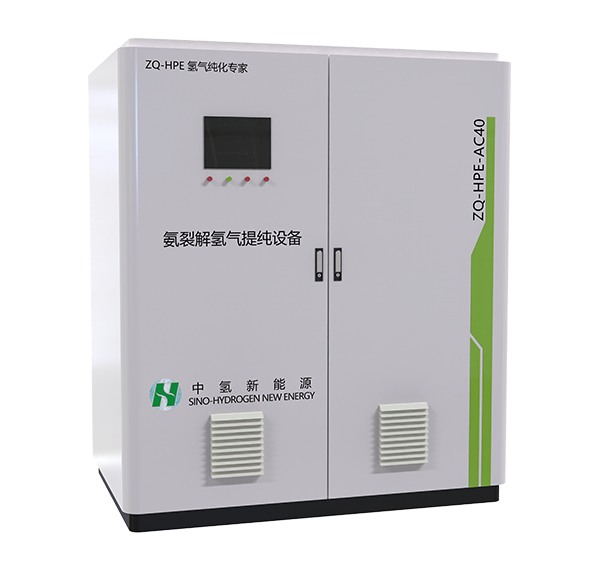 針對(duì)氨裂解制氫系統(tǒng)壓力低、溫度高的特點(diǎn),采用自主研發(fā)的特種金屬膜,開(kāi)發(fā)了ZQ-HPE-AC系列氫氣純化設(shè)備,與氨裂解制氫設(shè)備匹配性高、適應(yīng)性強(qiáng)。低壓、高溫氨裂解粗氫直接通入膜純化器,無(wú)需殘氨預(yù)處理(金屬膜耐高含量殘氨),熱利用率高,氫氣純化效率高,氫回收率高,穩(wěn)定性高。